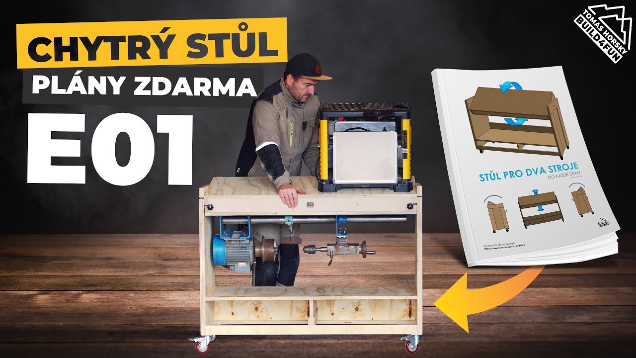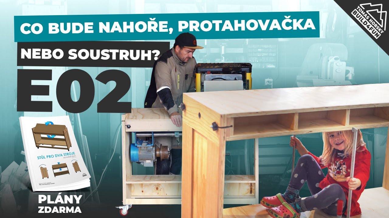 stůl, dva stroje, dílna, DW733, dewalt, protahovačka, soustruh, po dědovi, Šumava, šumavská dílna, plány, plány zdarma