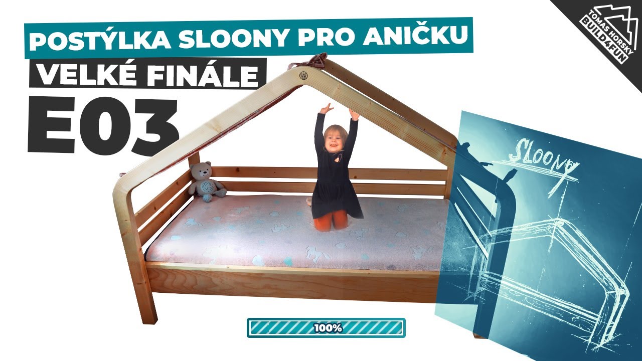 postýlka, Sloony, Anička, šumavská dílna, do dílny, vyrobsisam, vyrob si sám, dílna, kvh, hranol, Šumava, spánek, dětská postýlky, dětská, finále, spojování, postel
