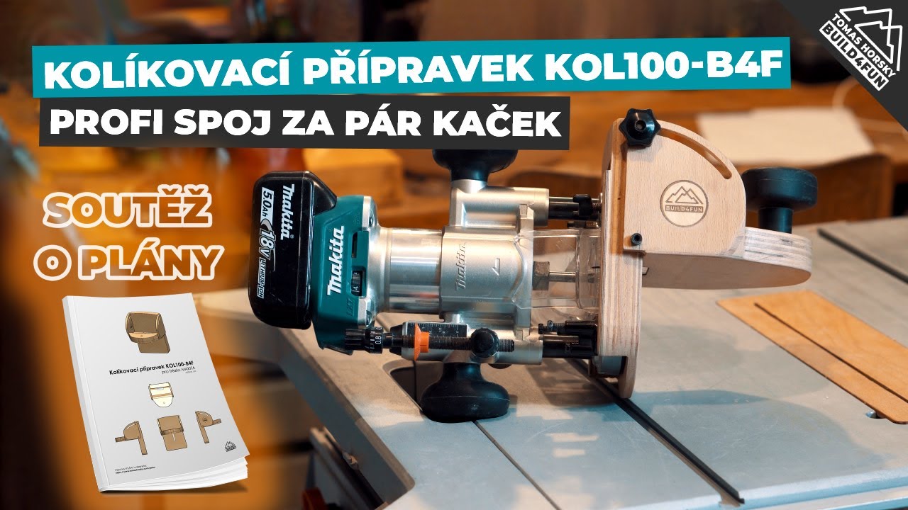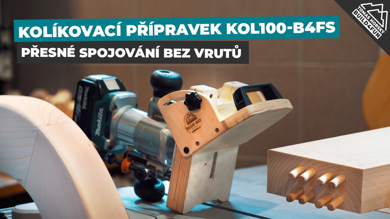 KOL100-B4FS, KOL100-B4F, kolíkovačka, kolíkovací přípravek, DRT50RTJX2, frézka, makita, Festool, DF500, práce se dřevem, vychytávka, frézování, spojování